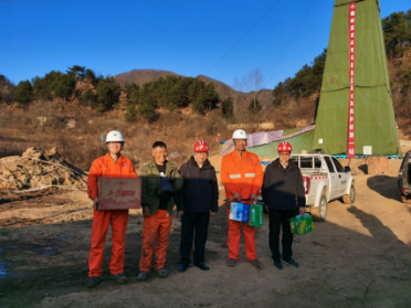12月1日,公司黨委書記、執(zhí)行董事劉曉東一行前往我公司小秦嶺國家級整裝勘查區(qū)綜合物探科研第一鉆施工地,慰問為該項目施工的山東省地礦局第三地質(zhì)隊礦產(chǎn)勘察院(以下簡稱山東三院)施工人員。并送去了生活慰問品。公司黨委副書記、總經(jīng)理王和平、總經(jīng)理助力王倉武、以及有關(guān)部門負責人陪同慰問。